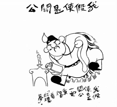 高龍生 (1903-1977) 的 《阿斗畫傳》 主要發表在《十日雜志》 上?!鞍⒍贰笔菍⑷龂鴷r代扶不起的阿斗和魯迅的阿Q結合起來的形象,他頭頂瓜皮帽,身穿破衣衫,樸實的方臉上布滿深刻的皺紋,看上去飽經風霜又老實可欺。這個阿斗逆來順受,毫不掩飾自己的愚頑,大膽展露自己的弱點,而使人警醒,很有現代感。其中 《一個怪夢》最為驚悚:阿斗被蛇盤住,掙扎中被蛇吞入左臂,他干脆一斧子砍掉自己的胳臂,順勢砍下蛇頭……