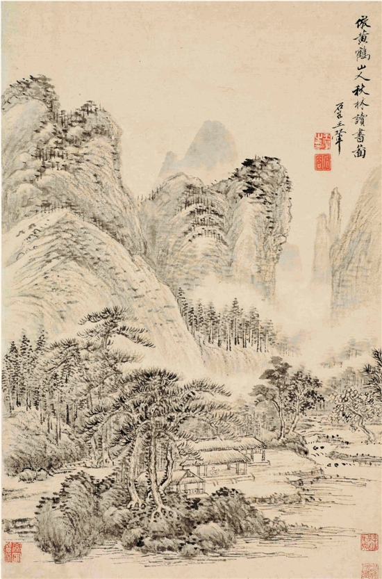 董其昌,以佛家禪宗喻畫,倡“南北宗”論,為“華亭畫派”杰出代表。其畫及畫論對明末清初畫壇影響甚大。王時敏是“四王”之首,又是“婁東派”的創始人,少時得董其昌指授,取法“元四家”,以黃公望為宗,晚清婁東畫派代表畫家與評論家秦祖永曾在《桐陰論畫》中評王時敏:“運腕虛靈,布墨神逸,隨意點刷,丘壑渾成?!蓖蹊b為“虞山派”之首,從董源、巨然處受益,仿古作品更見功力。在山水畫創作上講究布局,筆墨處處有傳統、有來歷。王翚具有堅實的臨摹功底,“仿臨宋元無微不肖”,“下筆可與古人齊驅”,又能“集古人之長,盡趨筆端”。王原祁最具個人特點,他以黃公望的淺絳為基礎,所畫山水有“熟而不甜,生而不澀,淡而彌厚,實而彌清”的贊譽。