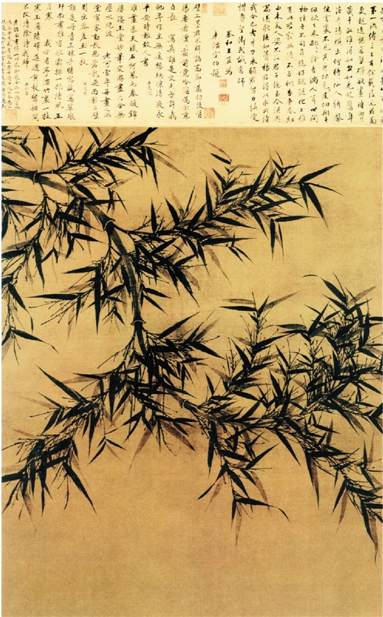 歷代寫竹大家都把自己的創(chuàng)作思想寫成文字,或詩或文留給后世留下豐富的文獻(xiàn)。如文同的“胸有成竹”,鄭板橋的“胸?zé)o成竹”,兩種不同的創(chuàng)作美學(xué)觀,啟迪了歷史上多少畫家的思維及思索,亦成就了無數(shù)的畫竹神品、妙品。再有倪瓚在《疏竹圖》的題跋上寫道:“余之竹,聊以寫胸中逸氣耳。豈復(fù)較其似與非,葉之繁與疏,枝之與直哉。或涂抹久之,它人視以為麻為蘆,仆亦不能強辯為竹,真沒奈覽者何。”這一段話影響了500百年來中國畫竹藝術(shù)的創(chuàng)作和審美的法則。