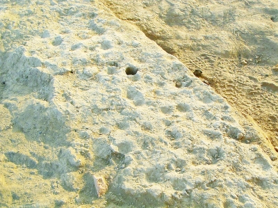 北庭故城城墻上清晰可見的夯窩。本報記者 王瑟攝/光明圖片