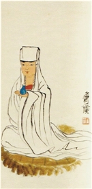 齊白石早期人物畫(huà)曾遍臨眾家,下了很大的功夫。如迄今保存最早的一件稿本是繪于1882年的《白描人物圖稿》,上題曰:“少時(shí)粉本老猶存,如此工夫覺(jué)笑人,不忍輕輕卻拋棄,污朱猶是劫灰痕。此稿乃余20歲以前所借人”。一件不滿20歲畫(huà)的稿本,已顯示了他的不凡功力。此外,《白描人物紡車(chē)圖》、《仿唐寅人物圖稿》及繪于1928年的《搔背圖》,則可看出唐寅、八大山人對(duì)齊白石的影響;現(xiàn)藏于中國(guó)美術(shù)館的瓷青紙單色《羅漢》(冊(cè)頁(yè)之一)明顯有金農(nóng)之風(fēng);而繪于1913年的駝背拄仗《鐵拐李》,黃慎的粗筆人物畫(huà)痕跡十分突出。由此可見(jiàn),齊白石早期對(duì)前人人物畫(huà)廣泛涉獵,確是下了一番苦功,為他日后的變法打下了扎實(shí)的基礎(chǔ)。