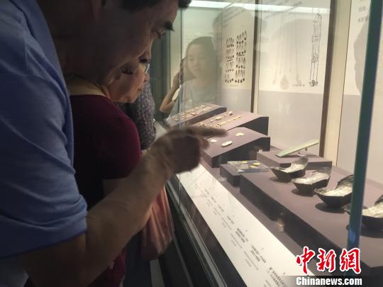 在這些金光熠熠的展品中,純度最高的展品達99.98%,來自于2011年搶救性發掘的都昌王妃袁氏墓中。這對金鑲寶牡丹花頭簪屬于王妃墓中一套11件首飾之一。據段濤濤介紹,這樣完整出土的首飾套件非常難得,而其高純度的煉金水平已經可以與現代技術相媲美。