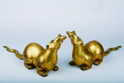 說起動物的形象,人們最熟悉的莫過于十二生肖。此次展出的一對《清乾隆銅鎏金吐寶神鼬》顛覆了大家長久以來對老鼠的印象。吐寶鼬不是一般的老鼠,是一種看管財寶的神獸,它口吐摩尼寶珠,代表著無限的財富。此對吐寶鼬由銅鑄而成,經(jīng)鏨刻修飾,展現(xiàn)出了精致的五官,體態(tài)豐滿渾厚,通體鎏金,工藝復(fù)雜。兩只吐寶鼬一雌一雄,萌態(tài)十足,想必是人人都想擁有的“招財鼠”。