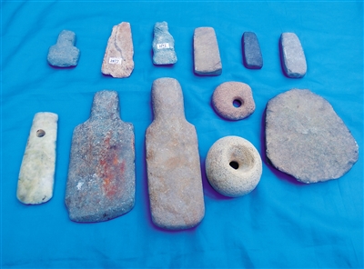 史前石器(新石器時代石拍、石鏟子、石斧、石紡輪)。