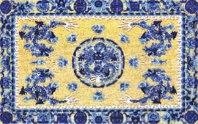 宮毯以羊毛、蠶絲、金線、棉線為主要原料,經緯線交錯為毯身結構的傳統手工織毯,堪稱“經緯線上的格律詩” 。元代北京的青塔寺就是專門織造宮廷用毯的地方。明清兩朝沿襲元代的織做工藝,并向精細多樣化方向發展。1903年,清廷在北京設立地毯傳習所,由宮廷技師傳授技藝。宮廷的織造技藝和圖案,才得以與民間地毯織造技術相融合。