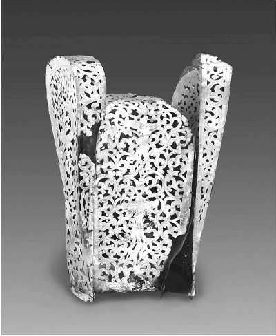 M2雖也被盜擾,但由于墓室槨木等坍塌將隨葬品掩蓋,使得銀、玉、琥珀等大量文物未被盜走。此次出土的金花銀鏤空鳳紋高翅冠、包金框龍紋玉焊腰、銀鏈白玉組佩、金流蘇等,與之前發(fā)掘的遼代陳國(guó)公主墓出土遺物相似,但制作更為考究,工藝也更臻完美,屬遼代文物珍品。