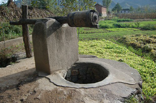 最古老的一眼水井,就建在村外偏西南,據說建成于清朝乾隆年間。這一眼老井,給我留下了無數刻骨銘心的記憶。我還在讀中小學的時候,冬春枯水季節,這眼老井的水就常常不夠全村人吃,水井周圍菜地離得近的人家,經常去水井里挑水抽水澆菜地,吃水就更加緊張。那時候,我父母親忙于做農活,早晨去挑水,因為井水被挑干了,或者在井盤上等著挑水的人太多,而出工做活計時間緊,來不及,常常才挑了一挑,井水就干了,或者根本挑不到水,父母親只好匆匆出工去做活計,還一直擔心家里這一天沒水煮飯。如果連續兩三天都挑不到水,大缸就徹底干了,就沒水吃了。這樣的日子,挑水的任務就落在了我和弟弟的肩上。