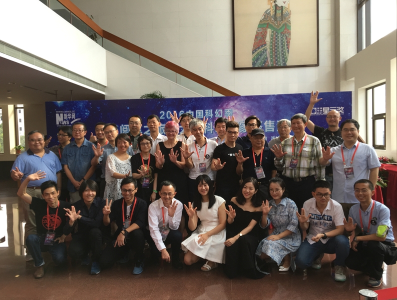 全部活動結束后,受到一致好評。我服了,不是服我自己,而是服了新華網(wǎng)的姚總,我的好兄弟姚予疆。起初我對他那暴燥的脾氣是有看法的,氣得有時我不想見到他。他打電話我不理,他急了,不斷向我解釋,設法哄我高興。他雖然脾氣不太好,動輒吹胡子瞪眼,但他對我們的華語科幻星云獎充滿激情。他一心要把我們的這個獎從科幻圈內(nèi)的自娛自樂,提升到大眾化、專業(yè)化、國際化的水準。他做到了。科幻嘉年華和七屆華語科幻星云獎開幕式及“科幻?中國與世界”國際科幻高峰論壇,每一個環(huán)節(jié),他事必恭親,不僅管臺上,還要管臺下。臺下的觀眾坐得滿滿的,上千人的會場座無虛席,這在國內(nèi)外的論壇上都是罕見的。臺上更是高大上,開幕式請來四個副部長級嘉賓為之剪彩,第一環(huán)節(jié)我們共同請來三國四方國際最高水準的中美日星云獎主席及雨果獎主席,進行了高水平的對話,并且釆用非常優(yōu)秀的同聲傳翻,使中外對話流暢,精彩絕倫;