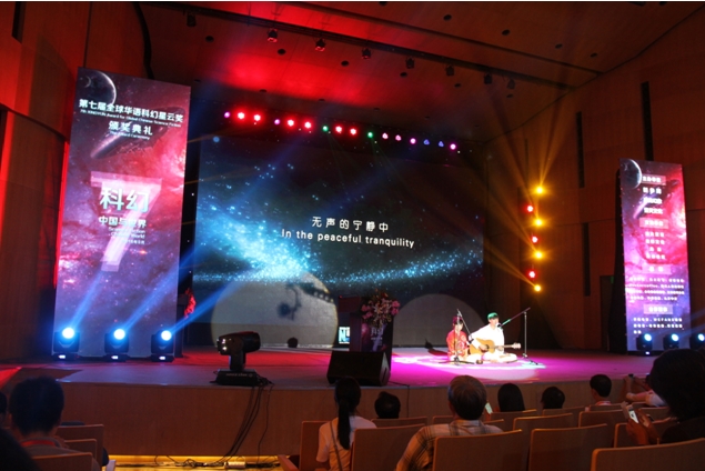 果然,她克服了種種困難,獻給大家一臺近乎完美的頒獎典禮。我說近乎,是因為臨陣換主持人帶來的遺憾,十分挑剔的科幻迷們,對這次晚會唯一的吐槽點就是主持人。他們不知道,原來的主持人是陳楸帆和墨熊,如果讓他倆主持頒獎典禮,科幻迷可以從頭尖叫到晚會結束。除此之外,觀眾對盛典的每一個環(huán)節(jié)都拍手叫好,交口稱贊。