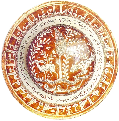 ④波斯13世紀陶碗,描繪著一只獵豹在伺機捕獲山羊。圖片由作者提供