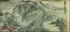 《搜盡奇峰圖》卷,清,石濤 紙本,此圖是石濤50歲云游京師所作。印證了作者所提倡的師法造化“搜盡奇峰打草稿”的美學(xué)觀。該畫在表現(xiàn)上,于奇險中見雄渾,嚴謹處寓虛空。雖看似筆墨豪放,皴擦點染盡在無意,而在整體上卻把握了峰巒層次,云氣走向及林木隱現(xiàn)的神韻。