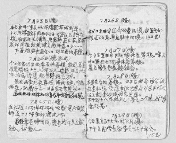 1936年7月23日,他的日記記載:“十七師、模范師自西傾寺出發(fā)后,即大部無(wú)糧,沿途亦無(wú)補(bǔ)充,盡食野菜、皮革、臭尸,致部隊(duì)極疲困,減員兩師達(dá)二百人。”
