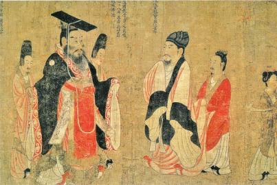《歷代帝王圖》為絹本,設色,縱51.3厘米,橫531厘米,是閻立本人物畫代表作,又稱《古帝王圖》。全卷共畫有自漢至隋13位帝王的畫像,其中前6人距閻立本時代較遠,后7人則較近。陳叔寶及楊堅父子等人,閻立本都有可能親自會見過,字文邕雖是他的外祖父,因去世較早,恐未及見,但對他的了解可能是較真實具體的。