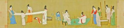 《搗練圖》是中國唐代名畫,是一幅工筆重設色畫,表現貴族婦女搗練縫衣的工作場面。系盛唐時的一幅重要的風俗畫,對后世繪畫風格有重大影響,是唐代仕女畫中取材較為別致的作品,系唐代畫家張萱之作。畫作原屬圓明園收藏,1860年“火燒圓明園”后被掠奪并流失海外。