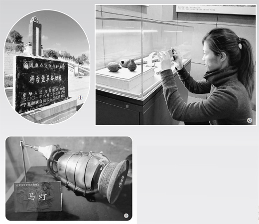 圖①:將臺(tái)堡革命舊址。 孫 湄?cái)z 圖②:觀眾在紅軍會(huì)寧會(huì)師紀(jì)念館興致勃勃地參觀。 本報(bào)記者 鄭海鷗攝 圖③:寧夏西吉將臺(tái)堡紅軍長(zhǎng)征會(huì)師紀(jì)念園內(nèi)收藏的紅軍曾使用過的馬燈。 成 浩攝
