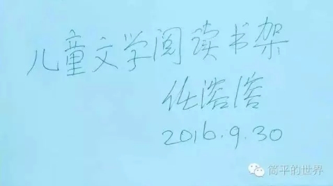 94歲的任溶溶和93歲的孫毅,這兩位德高望重的兒童文學(xué)作家首先支持了我。任老先生親自題寫了“兒童文學(xué)閱讀書架”八個(gè)充滿力量的大字,而且捐贈(zèng)了一箱子他的名著和譯作。他讓隨時(shí)在身邊照顧他的兒子去郵局寄書,但我生怕發(fā)生意外,說定上門去取,而著名節(jié)目主持人曹可凡又怕我拿不動(dòng),親自陪我前去,并抱著一大箱書把我送到車上。孫老先生的腿腳不便長時(shí)間站立,但他卻窩在地下室里精心地整理所捐贈(zèng)的著作。讓我特別感動(dòng)的是,上海文達(dá)學(xué)校校長黃曉峰在該校開展了“手牽手,為東回鎮(zhèn)中心小學(xué)小朋友捐書”活動(dòng),孩子幫孩子,那股熱情就像沸騰的水,短短時(shí)間就募集到658冊兒童文學(xué)書籍。有著我眾多同學(xué)、鄰居、書友的“期待旅行”微信群,一天功夫便為我籌集了一萬多元錢,希望能制作牢靠的書架,并為學(xué)校的近500位孩子再送些學(xué)習(xí)用品。
