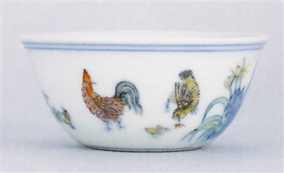 顏色既多,搭配不當,反而容易過猶不及,用力過猛便如濃妝艷抹,操作不當恰似庸脂俗粉,成化瓷器則絕無此弊。這與成化瓷器的另外兩個特色頗有關系:一是用色清淡。以大家熟知的青花為例,若將成化青花與永樂、宣德、嘉靖、萬歷青花對比,便可知成化青花發色具有明凈素雅的特點。青花色澤的差異一般可歸結為青料礦石來源不同。永樂、宣德朝用進口自中東的“蘇麻離青”,成化、弘治朝則用江西樂平縣的平等青,典型的嘉靖至萬歷時期青花則用江西省上高縣的“石子青”。各朝對原料的選取在一定程度上受制于資源,然而歸根結底,御窯瓷器的生產,還是受命于各朝皇帝。皇帝的品位好尚,自然極大地影響了歷朝瓷器的審美取向。事實上,成化瓷器用色清淡的特色,是此朝瓷器的一貫風格,并不只見于青花。縱然是色彩略顯稠膩的雜釉彩瓷器,相較于其他各朝,也更有清麗嬌態。