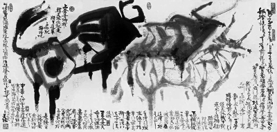 展覽開篇同樣別具一格,作為首先躍入參觀者眼簾的板塊“韓美林藝術大篷車”,它以編年史的方式,通過“時間軸”展現韓美林這些年行走江湖,向民間老藝人“求教”的點點滴滴。“沒有這個‘大篷車’,就是說我如果不下廠,不下鄉,就不會有這么多的創作欲望,也沒有這么多的形象,民間藝術對我的幫助太多啦。”韓美林說,每次和老鄉在一起,他都感覺特別踏實,不光學習畫畫、剪紙、面塑、捏泥人兒,還有秦腔、評彈、黃河大鑼鼓和舞蹈。“我一輩子受延安的那些老革命藝術家的影響,藝術家不下去不行。你看我們現在美術學院的一些學生,會畫的又有幾個?都是拿著電腦閉門造車。真功夫還在行萬里路。”他半開玩笑地說,他如今的構思稿即便用上二百年都用不完。這也是他的創作里很少發現重樣內容的奧秘。