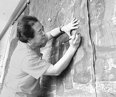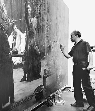 王宏劍在創作《楚漢相爭·鴻門宴》。 資料圖片