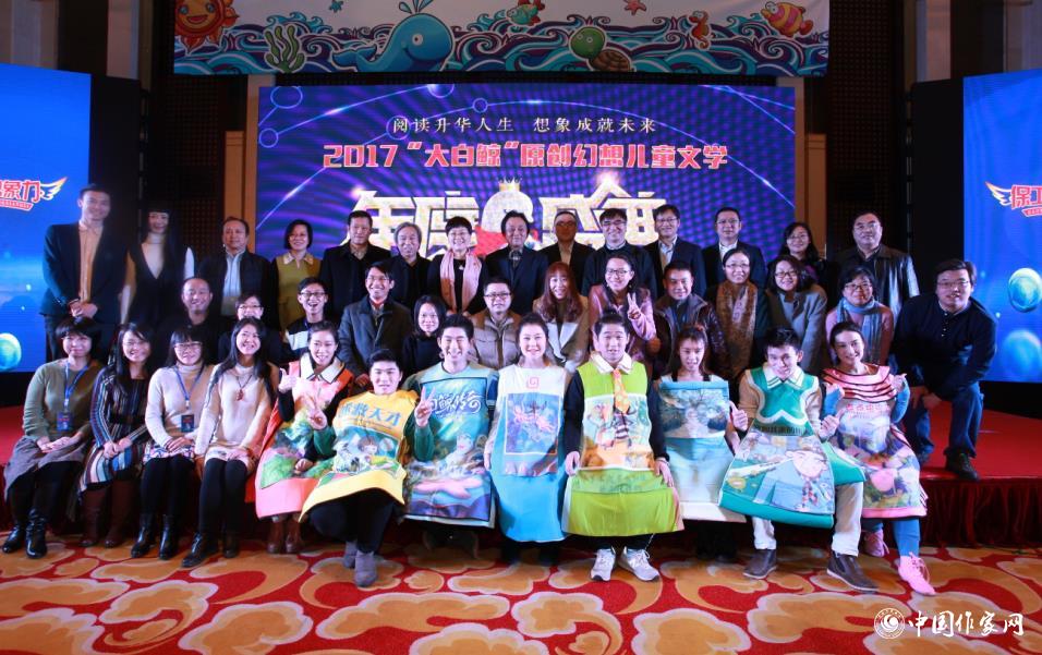 2017年1月10日-11日,由大連出版社攜手北京師范大學(xué)中國兒童文學(xué)研究中心、大白鯨世界文化發(fā)展(大連)股份有限公司、大連圣亞旅游控股股份有限公司共同主辦的2017“大白鯨”原創(chuàng)幻想兒童文學(xué)年度盛典系列活動在北京舉行。中國新聞出版?zhèn)髅郊瘓F(tuán)有限公司黨委書記、董事長馬國倉,國家新聞出版廣電總局規(guī)劃發(fā)展司副司長孔德龍,國家新聞出版廣電總局出版管理司副司長李一昕等有關(guān)領(lǐng)導(dǎo),中國兒童文學(xué)作家曹文軒、葛冰、周銳、湯素蘭、蘇梅,美國科幻作家南希?克雷斯,杰克?斯奇林斯德,旅德華人作家朱奎,兒童文學(xué)評論家樊發(fā)稼、王泉根、湯銳,科幻小說家王晉康、吳巖、姚海軍以及教育專家、媒體記者近500人出席盛典。