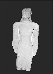 這件雕像的背部扁平,本來可能是靠墻而立。雕像人物身體表面殘存有紅色顏料的痕跡,裙裝之上本來涂有白石膏,二者形成鮮明的對(duì)比。根據(jù)該神廟中出土的另一尊雕像上的刻銘判斷,這尊雕像人物應(yīng)該是里西安時(shí)期的一位統(tǒng)治者。