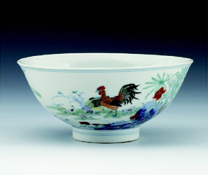 清雍正景德鎮(zhèn)窯斗彩芭蕉群雞紋碗