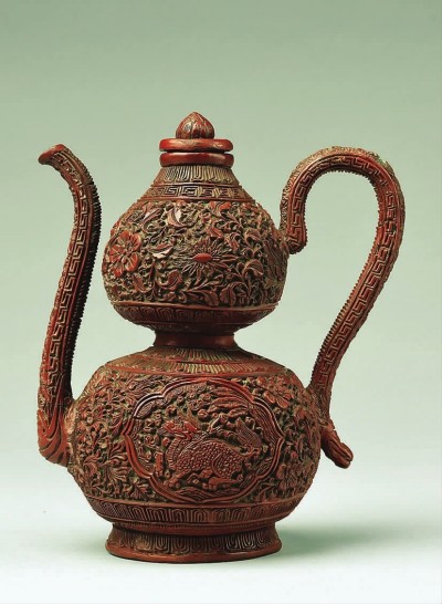 其中,以螺鈿工藝最具雕飾之美,其做法是用螺殼與海貝磨制成人物、花鳥、幾何圖形或文字等薄片,根據(jù)畫面需要而鑲嵌在器物表面,并多加金銀片屑,很是絢麗奪目。比如本次展出的一件元代的黑漆嵌螺鈿廣寒宮圖捧盒,盒蓋裝飾廣寒宮圖案,表現(xiàn)了唐玄宗在呂道士的引導下夜游月宮,嫦娥出宮接駕并以仙樂相迎的情景。盒蓋上的人物用整片雕刻過的鈿片鑲嵌而成,除3位主要人物外,另有11位樂手和3位侍從,按照人物的服飾、神態(tài)各有不同,雕刻非常細膩。而一件清代的百寶嵌喜上眉梢象牙筆筒,則在螺鈿鑲嵌工藝的基礎(chǔ)上,加入象牙、琥珀、青金石、紅珊瑚、犀角等材料。隨著照射光線角度的變化,筆筒上的圖案花紋會散發(fā)出不同的光彩。