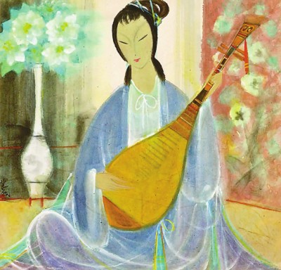 西學東漸、對歐洲藝術再熟悉不過的林風眠,他筆下的女子如果不是中國風的仕女,畫中人長長的脖子其實很容易讓人想到莫迪里阿尼。圖為中華藝術宮藏林風眠《琵琶仕女》。(資料圖片)