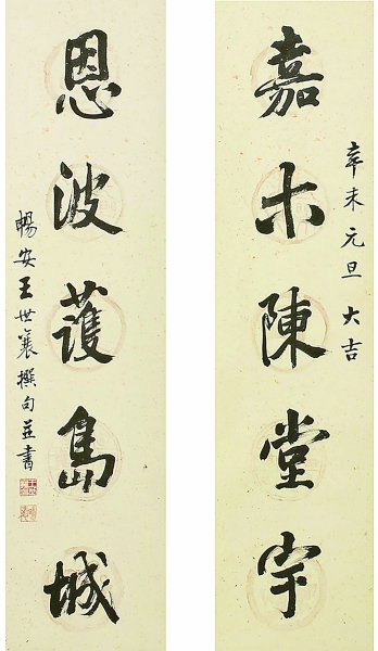 1990年秋,伍嘉恩在香港有一個專門陳列明式家具的空間,還只有英文名字,王世襄為她題贈了中文名“嘉木堂”。第二年春節,王世襄又特別為伍嘉恩寄去一副親筆書寫的楹聯:“嘉木陳堂宇,恩波護島城。”既嵌入她和店鋪之名,也有慰勉和祝福的意思。他知伍嘉恩中文不好,寫了一封英文信附在后面,為她仔細講解了楹聯的意思。