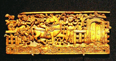 阿富汗是古代絲綢之路上將中國、印度與希臘、羅馬以及埃及聯系在一起的重要一環,貝格拉姆正是其中一處交通要沖,也是阿富汗最重要的考古遺址之一。考古學家在這里發現了兩個密封于2000多年前的房間,房門用磚封閉并且涂上了灰,以使人們徹底遺忘。研究表明,它們是用來儲存貨物的巨大庫房。作為家具的飾板,大量象牙雕刻被保留下來,這些帶有濃郁印度風格的雕刻,讓我們得以窺見2000年前的人們高超的藝術創作水準。