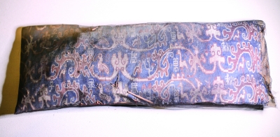 帶人們走近“精絕古城” 成都博物館展出“五星出東方利中國(guó)”護(hù)膊和“千秋萬(wàn)歲宜子孫”錦枕