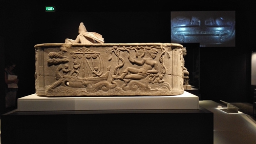 粗粗看來,這個制作于公元前600年的木棺和常見的古埃及木棺差別不大,但實際上它的全部材料都來自埃及以外的地區(qū):木料來自于黎巴嫩,黃金來自努比亞……這也就告訴觀眾,在文明之初,全球化就拉開了序幕。
