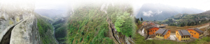 “大發(fā)渠”擦耳巖段。黃大發(fā)沿著陡峭的絕壁巡查、清理水渠。如今的草王壩村。田維野攝