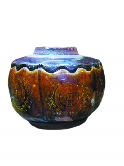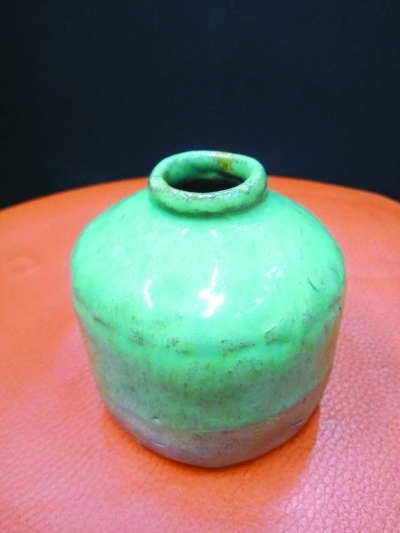 一個巨型“大蘋果”十分奪目,它是明晚期的一只紫砂冬瓜釉茶葉罐,名為“蘋果尊”。在當時制作這種中間寬兩頭窄的器型是十分困難的,尤其從底部向上延伸的弧度要自然舒張。所掛之釉是采用原礦料調配而成,后世很難仿制。