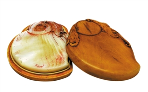 清代宮作硯——乾隆仿古螺鈿仙桃硯。