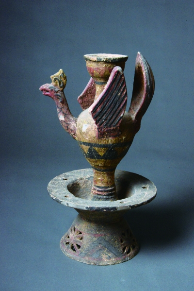 戰國陶質彩繪鳳鳥油燈 油燈博物館藏