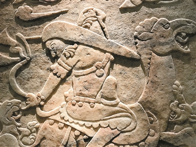 本次展覽“重頭戲”“虞弘墓漢白玉石槨”上的精美雕刻。 高雷/圖