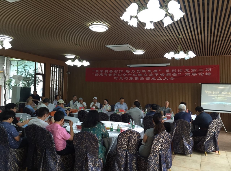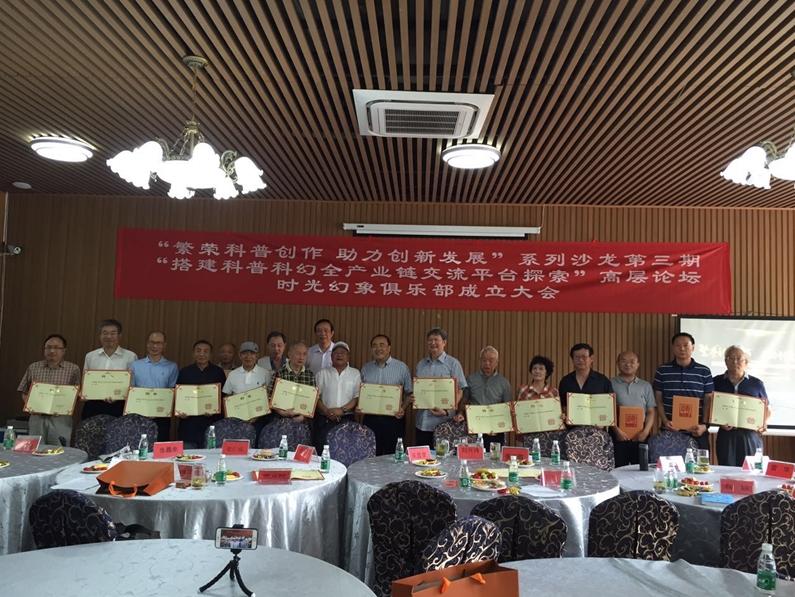 2017年6月25日,由中國科普作家協會主辦、成都時光幻象文化傳播有限責任公司承辦的“搭建科普科幻全產業鏈交流平臺探索”高層論壇——“繁榮科普創作 助力創新發展”系列沙龍第三期暨成都時光幻象俱樂部成立大會在成都溫江時光幻象公司娛樂部——楚天印象酒樓舉行。