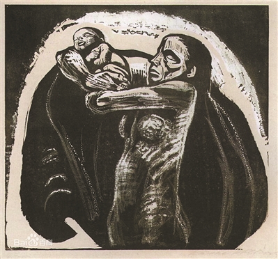 這也是中國人最早認識的珂勒惠支作品,其典型風格有著集中表現。她善于通過肢體語言,尤其是通過頭和手,簡潔有力地刻畫出人物的內心掙扎?!稜奚氛侨绱?,畫中赤裸的母親緊閉雙眼,在極度悲哀中,伸出雙手交出她的孩子。用魯迅的話說“這藝術是陰郁的,雖然都在動彈,集中于強韌的力量,這藝術是統一而單純的——非常之逼人?!?/p>