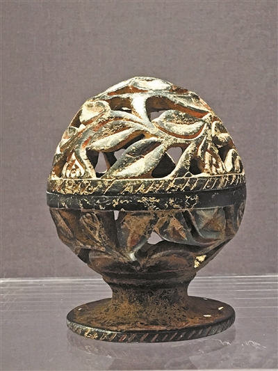 展場中,一件名為“白釉籃彩刻畫人物圖罐”格外突出,白釉整潔,而其上卻淋灑著許多藍釉斑點裝飾。據(jù)介紹,這種藍色不是源自中土,而是來自西域,唐三彩中的藍色也是如此。
