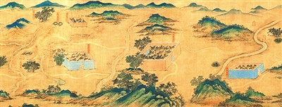 《絲路山水地圖》又被稱為“青綠山水畫”,或者說(shuō),這幅地圖是用青綠山水的方法呈現(xiàn)的。青綠山水是中國(guó)山水畫最早成熟的式樣。2017年,北京故宮博物院舉辦了館藏歷代青綠山水畫展,其中宋代青綠山水長(zhǎng)卷《千里江山圖》引發(fā)轟動(dòng)。青綠山水以概括、富有強(qiáng)烈對(duì)比的表現(xiàn)形式,適合表現(xiàn)觀賞性與實(shí)用性相協(xié)調(diào)的山水地圖。明清時(shí)期出現(xiàn)了一批青綠山水地圖,由于實(shí)用性和時(shí)代整體繪制水平的制約,普遍藝術(shù)性不高,格調(diào)偏俗氣。