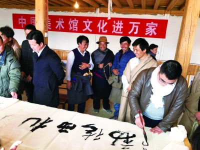 春節期間,中國美術館送文化下基層小分隊來到甘南藏族自治州迭部縣,在弘揚優秀文化、引領文明新風的同時,也為山高路遠的迭部送來文化祝福,豐富了高原民眾的精神文化生活。他們為各族群眾送去了新春文化禮物。其中,300余冊精美的美術畫冊捐贈給迭部縣圖書館。這些畫冊中的作品,都是近年來中國美術館策劃和舉辦的一系列重要美術展覽的精品佳作。之后,他們還與甘南美協會員、甘南民族師范學院美術教師等美術工作者在座談會上進行了深入交談。小分隊就甘南美術工作者較為關切的人文歷史、民族文化、自然風光等甘南豐厚美術文化資源如何轉化為豐碩美術創作成果的話題,給予了熱情建議。春節前夕,中國美術館還組織小分隊趕赴江西省黎川縣開展“文化迎春、藝術為民”系列惠民活動,將中國美術館藏精品圖書、年畫拓片、扶貧慰問金、慰問品與中國美術館的問候與祝福送到了黎川人民身邊,為筑就人民的藝術之夢播撒了希望。