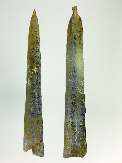 在鑒壺旁,擺了一組山西出土的“侯馬盟書”及河南出土的“溫縣盟書”,都是當時晉國卿大夫之間舉行盟誓用誓詞。展覽說明寫道:“據《春秋》記載,242年內諸侯國之間朝聘盟會多達450次,反映了諸侯國之間、公室與卿大夫之間、卿大夫相互之間,為重新劃分利益訂盟誓而破壞原有禮制的事實。”馬今洪說,春秋時期經常會盟,通常召集人即是盟主,盟主就是“老大”,最為人熟知的五個“老大”是春秋五霸。訂盟書的意義在于規定利益邊界,主要是為了盟主的利益,“老大吃肉,小弟喝湯”。