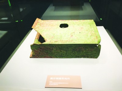 往前走,只見展柜中陳列著不少建筑構件,如陶瓦、瓦當、陶水管等,來自春秋戰國時期的各個都城。據《鹽鐵論·通有》:“燕之涿、薊,趙之邯鄲,魏之溫、軹,韓之滎陽,齊之臨淄,楚之宛陳,鄭之陽翟,三川之二周,富冠海內,緣為天下名都。”再結合這些年對都城城址的考古發現,可證當時都城的繁華。記者看到,在展柜中陳列著幾件青銅建筑構件,有曲尺形的,有楔形的,有方筒形的。馬今洪介紹,其中的曲尺形銅建筑構件,是目前發現時代較早的銅質建筑構件。這些銅質建筑構件一般用于連接枋、梁,主要起加固和裝飾作用。據展覽說明,由于色澤金黃,這些銅質構件又被稱為“黃金鋼”。這批建筑構件的出土地陜西鳳翔,先秦時期屬于秦都雍城的范圍。“你想想看,整個房子金光燦燦,當時的雍城多壯觀啊!”