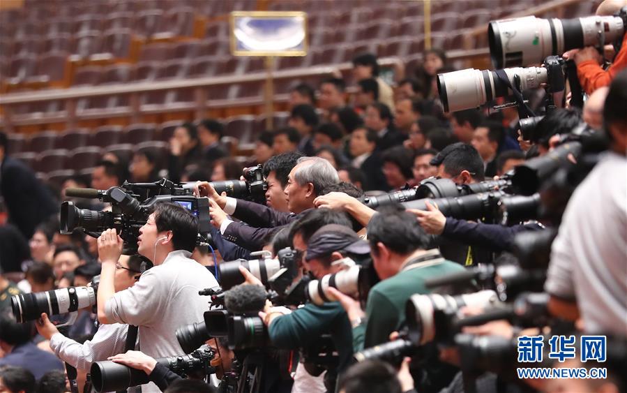 3月14日,全國政協十三屆一次會議在北京人民大會堂舉行第四次全體會議,選舉政協第十三屆全國委員會主席、副主席、秘書長和常務委員。這是記者在會場采訪。新華社記者 張玉薇 攝