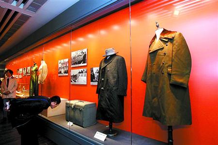 陳毅穿過的綠色毛領呢子軍大衣(右)。均 本報記者 蔣迪雯 攝