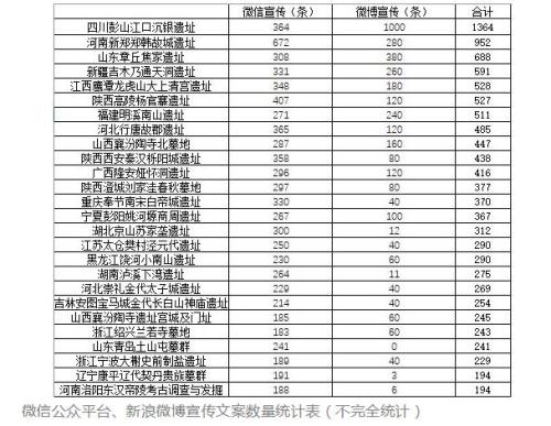 在“2017年度全國十大考古新發現”前一天,這篇文章對26項入圍“2017年度全國考古十大新發現”項目的網絡宣傳文案數量進行了統計。胡宇煊在統計了微信公眾平臺、新浪微博宣傳文案數量后,對這26個項目進行排序,并大膽預測了2017年度全國考古十大新發現的評選結果。