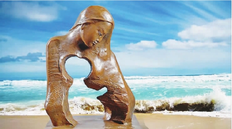 雕塑與其他藝術形式相比有一個鮮明的特點,即其特殊的立體形式,這種立體形式讓其與周圍環(huán)境的深度互動成為可能,而如何發(fā)揮其優(yōu)勢,讓其在固定的空間中發(fā)揮藝術魅力同時又增強城市空間的審美性,就成為雕塑展覽的新課題。在“公共雕塑邀請展”中,策展人盧征遠特意選擇了22位知名雕塑家的36件具有象征意義的雕塑作品參展,配合著博鰲融創(chuàng)·金灣的碧海、沙灘,以獨特的設計思路體現(xiàn)出中國傳統(tǒng)審美品格與現(xiàn)代化開放眼光的統(tǒng)一,追尋著海上絲綢之路路線的大體布局,展示出藝術家對傳統(tǒng)文化的皈依和對現(xiàn)代“絲路”文化的期待。