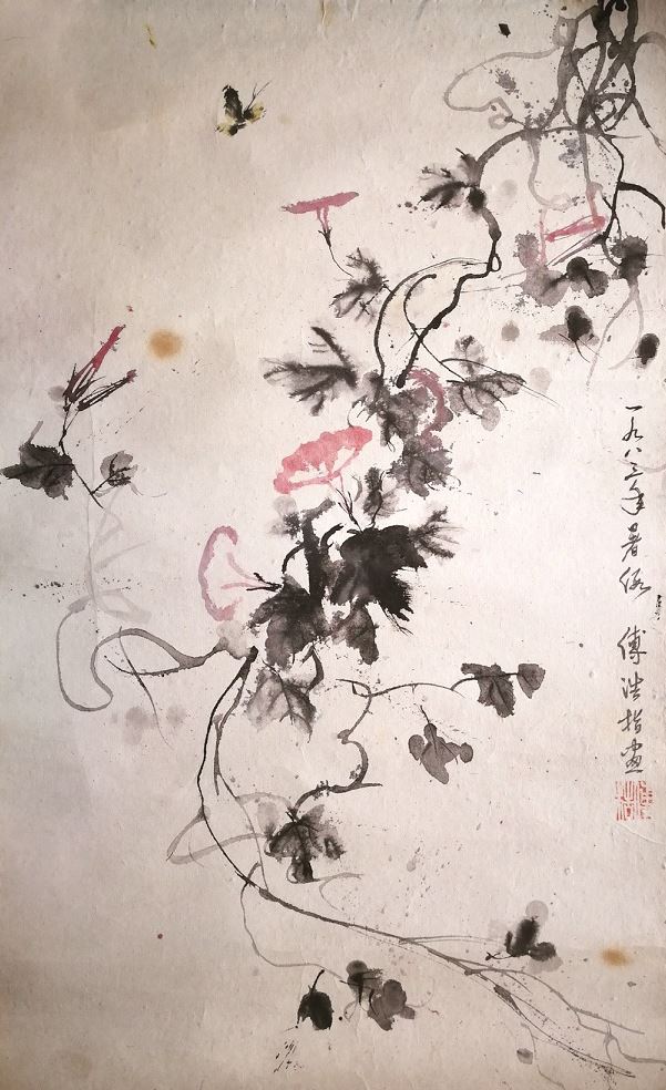 小學(xué)五年級起,正式師從西安美術(shù)學(xué)院退休教授陳瑤生學(xué)國畫。先師教學(xué),遵循傳統(tǒng)方法,即每隔一段時(shí)間,當(dāng)場示范,畫一兩幅課徒稿,讓我?guī)Щ丶胰ヅR摹。開始畫梅花,后來專習(xí)墨竹。據(jù)先師言,花鳥畫基本功梅蘭竹菊“四君子”中,以畫竹為最難,他老人家曾專研5年。據(jù)時(shí)人評論,先生晚年的墨竹爐火純青,有“神品”之譽(yù)。我雖年少氣躁,不滿足于單調(diào)重復(fù)的臨摹,但也暗下決心,要把先師的絕技學(xué)到手。然而不幸的是,我學(xué)了不到5年,先師即于1979年棄我而去了。從此,我又回到了以自修為主的狀態(tài),除堅(jiān)持研習(xí)所學(xué)外,還一度嘗試過指頭書畫和篆刻,我書畫上的用印都是自己刻的。