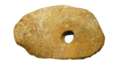 2015年7月7日,張福有與池南區區委書記曹樹清、科員于建一起,在區委所在地撫松縣漫江鎮漫江村進行田野調查。于建看到一塊帶孔的石頭,拿給張福有看。“我接過來一看,馬上看出這個孔肯定是人工磨出來的。孔的周邊約有1厘米向下磨了,凹了下去,而且兩面都有,這是典型的人為痕跡。可惜少了一個角,這個孔應該能環上,缺的部分非常重要,必須馬上找到!”張福有對記者說,“于是,我們馬上開始尋找丟失的另一小半。”